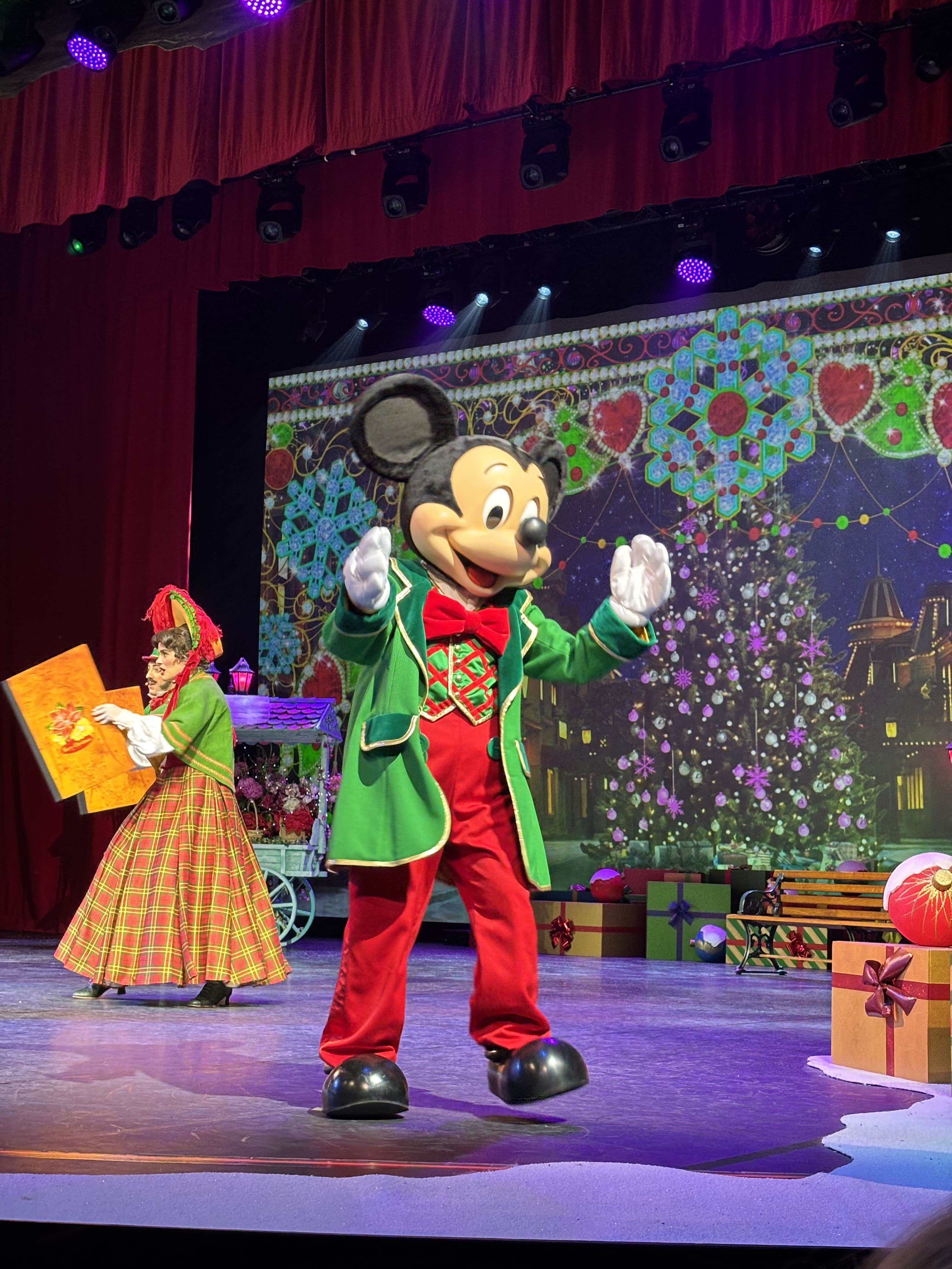 Bij het kasteel voeren de Disney-prinsessen dagelijks een elegante kerstwals uit, begeleid door zachte muziek en dwarrelende sneeuwvlokken. Verder zorgen muzikanten, dansers en kleine koren verspreid door het park voor extra sfeer. Waar je ook loopt, overal klinkt muziek en voel je de warmte van de feestdagen.